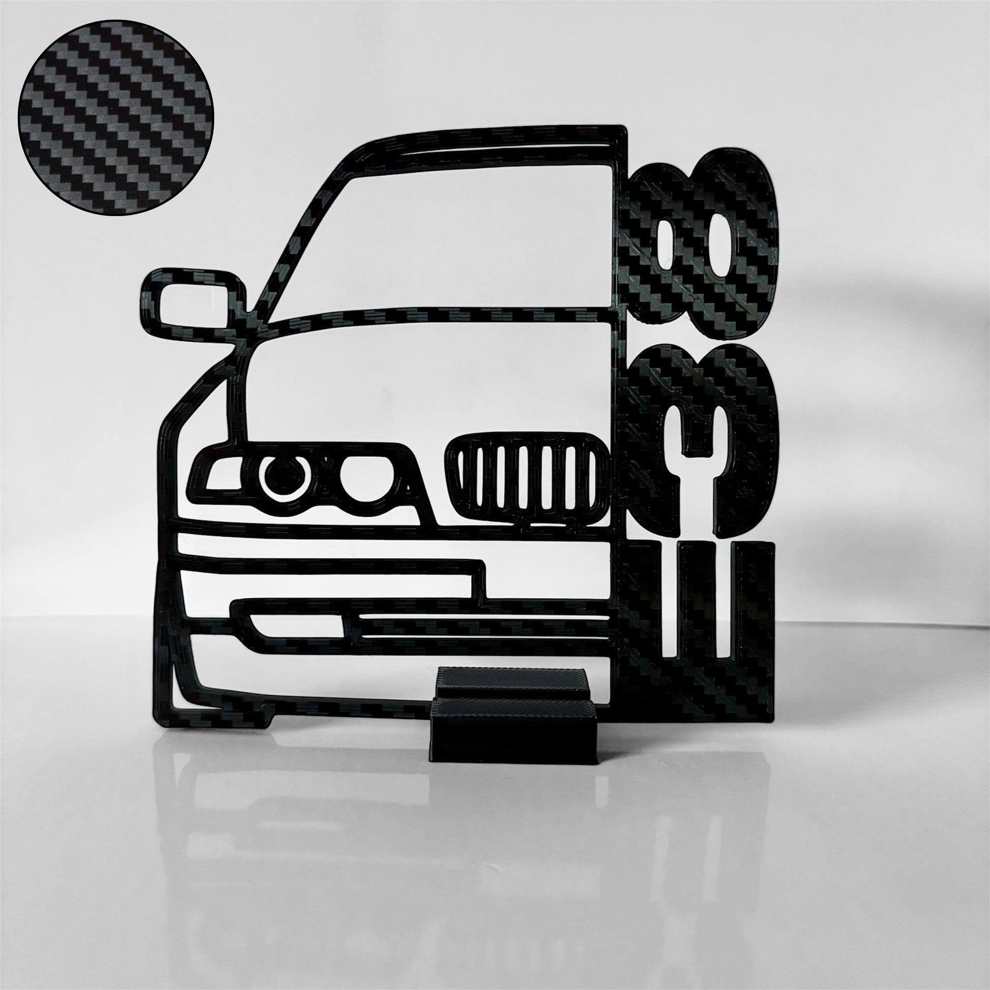 Stilinga automobilio motyvo statulėlė – puikus būdas suteikti tavo erdvei išskirtinumo ir charakterio. Pagaminta su realistišku raštu, imituojančiu anglies pluoštą (carbon look), ši detalė sujungia aistrą ir eleganciją.